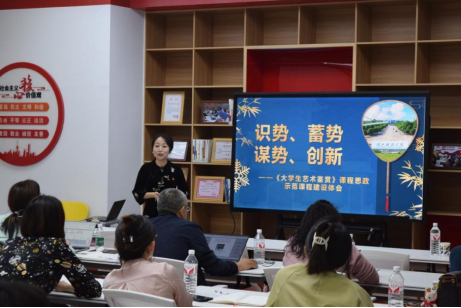 最后,我校音乐学院唐珊珊副教授结合她主讲的《大学生艺术鉴赏》课程思政示范课程,从识势、蓄势、谋势、创新四个方面生动形象地分享了她在课程建设中的心路历程。她建议老师们结合专业实际以及课程设置情况和学生的认知程度,与时俱进地将具有特色的课程思政元素巧妙融入教学,提升学生参与度。唐珊珊副教授曾获学校教创赛(课程思政)一等奖等多项教学竞赛荣誉,主讲的《大学生艺术鉴赏》自推出以来广受欢迎,目前在新华网新华思政全国高校课程思政教学资源服务平台示范课程栏目点击量已突破10万。